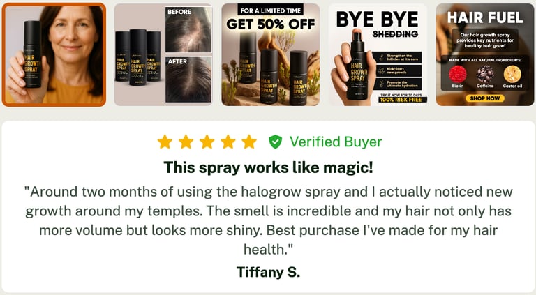 Experience up to 56% thicker and longer hair in just 18 weeks with HaloGrow Hair Spray! This advanced formula not only stimulates natural hair growth but also delivers deep hydration and a smooth, silky texture from the very first use.